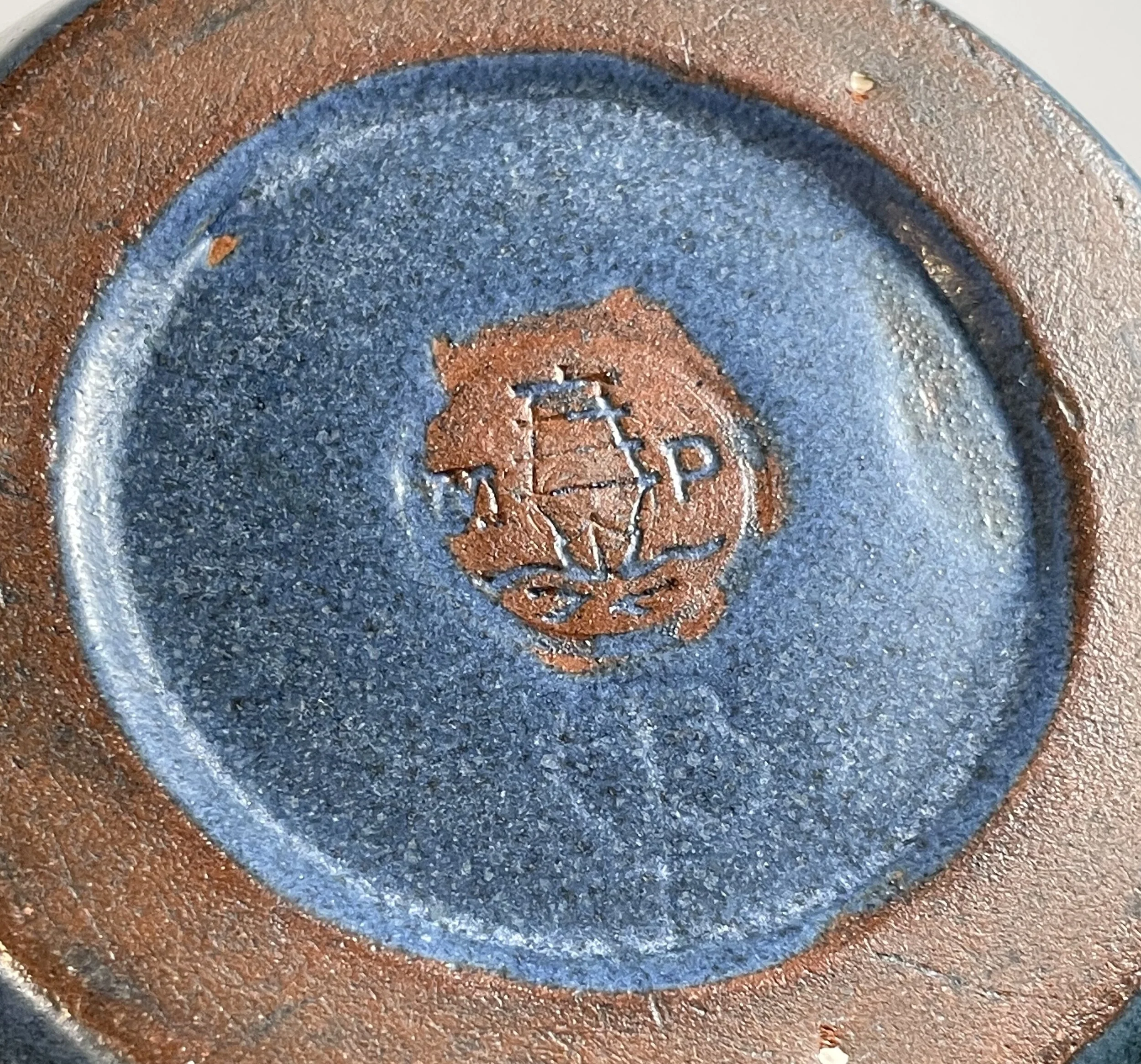 Marblehead PotteryPiece # 11 Shape 30-a, Blue Glaze Vase, Incised and Painted Green Decoration, Incised AB and T `Signatures, Incised MP Ship Mark Piece 10 Piece 12