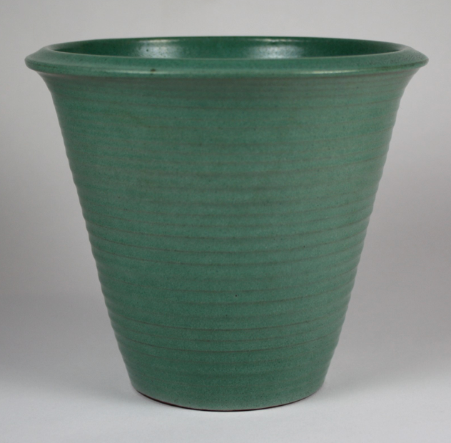 Marblehead Pottery Piece # 282 Green Ribbed Flower Pot, Deaccessioned Impressed MP Ship Mark Piece 281 Piece 283