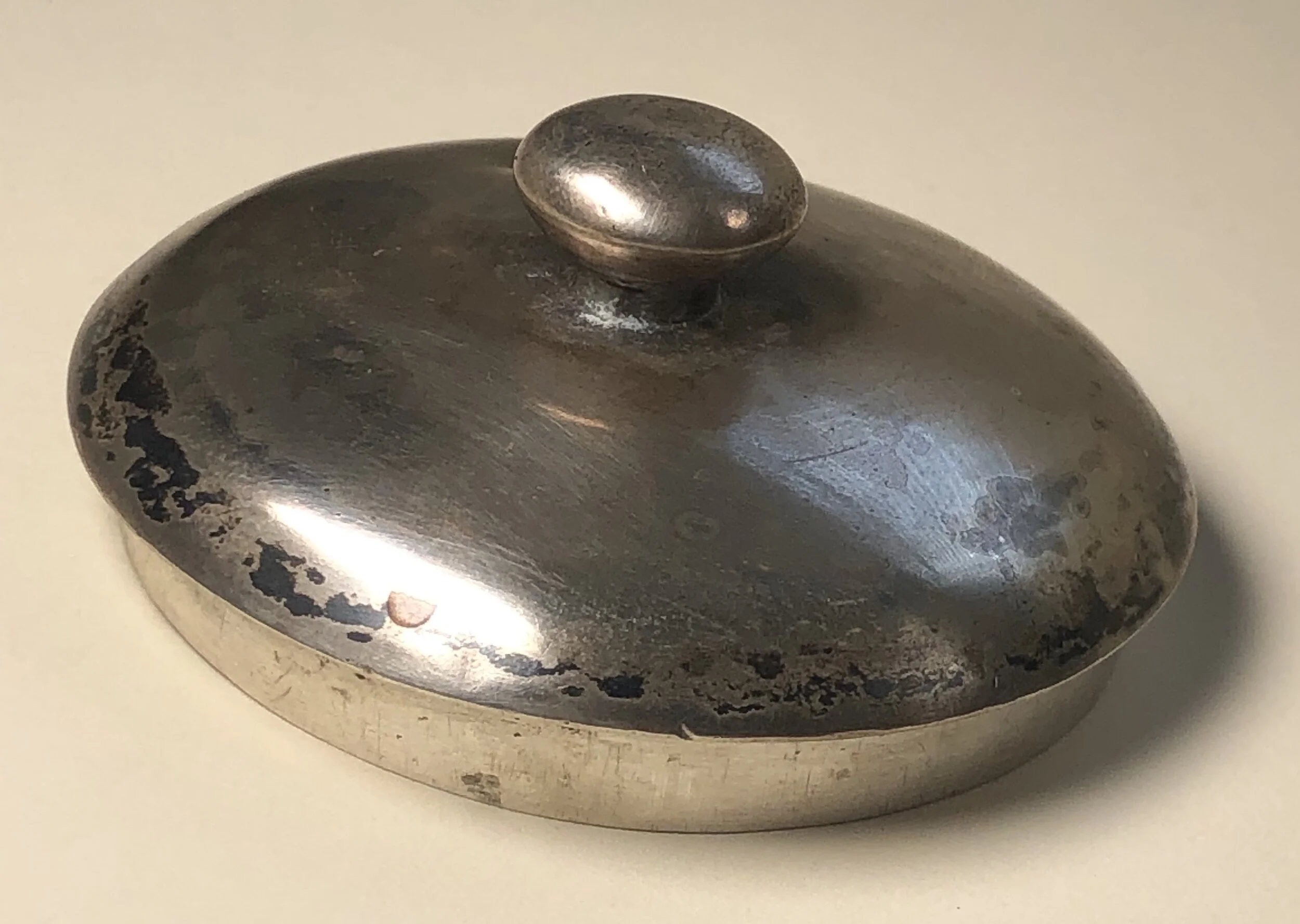 The silver cover is unmarked and has a ding and minor wear but nothing that detracts from the beauty if this rare little gem!!”