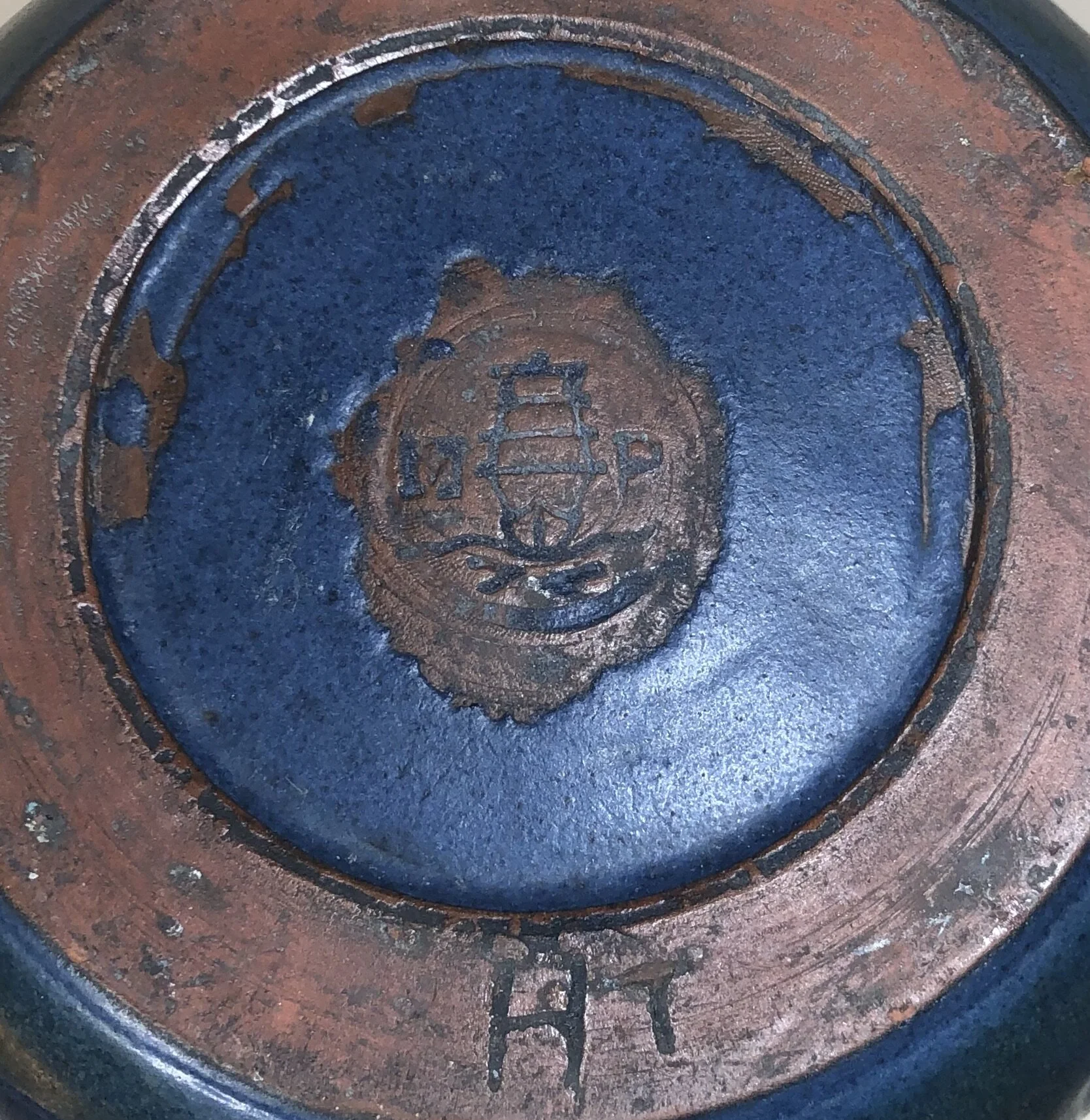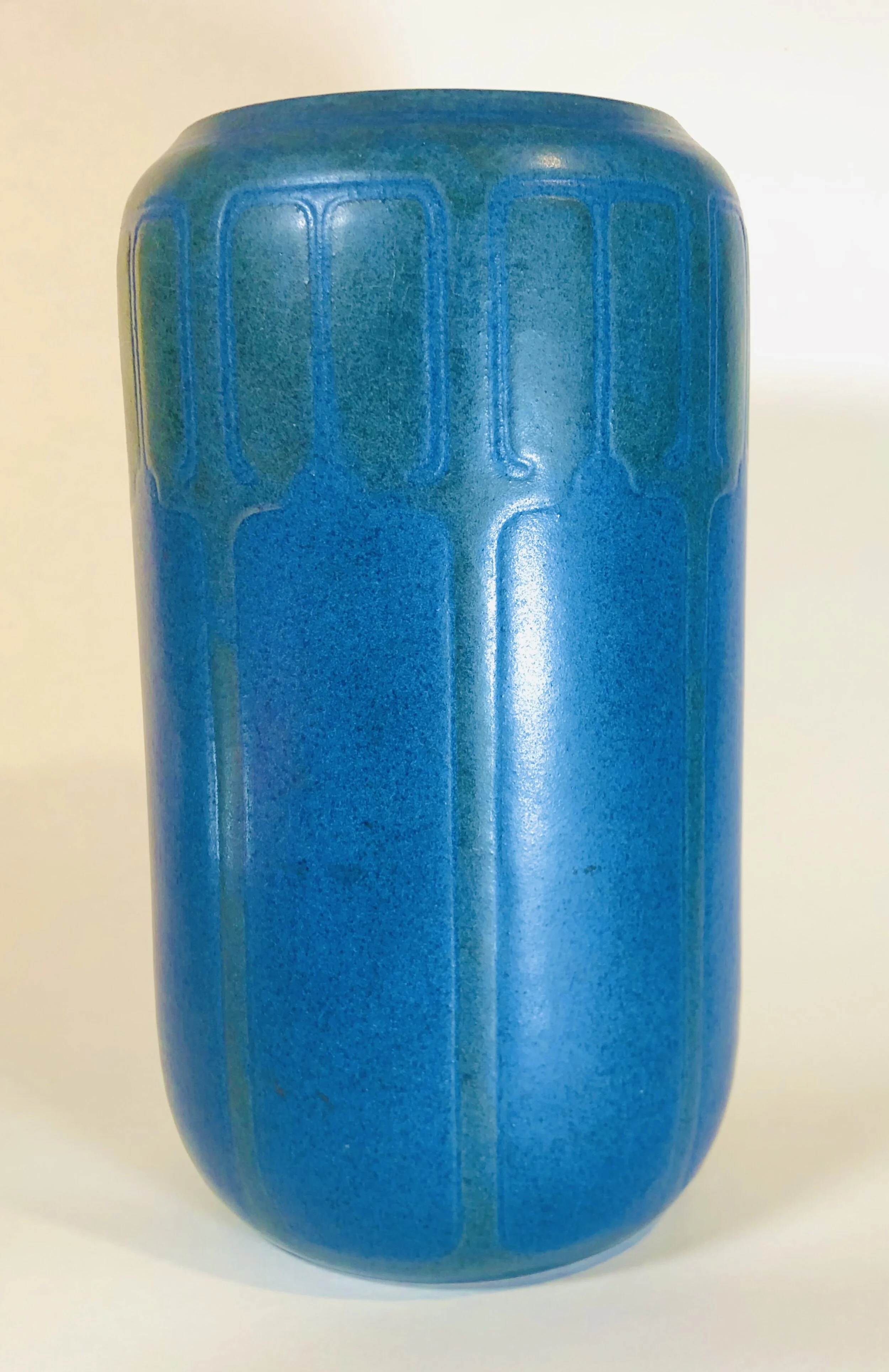 Marblehead Pottery Piece # 417 Tall Cylindrical Vase, Incised and Green Painted Decoration, eBay, Impressed MP Ship Mark, HT (Hennessey Tutt) Signature Piece 416 Piece 418